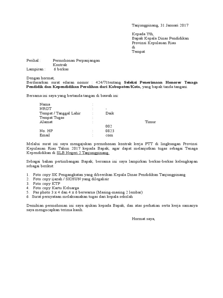 Contoh Surat Permohonan Sk Honorer - Guru Paud
