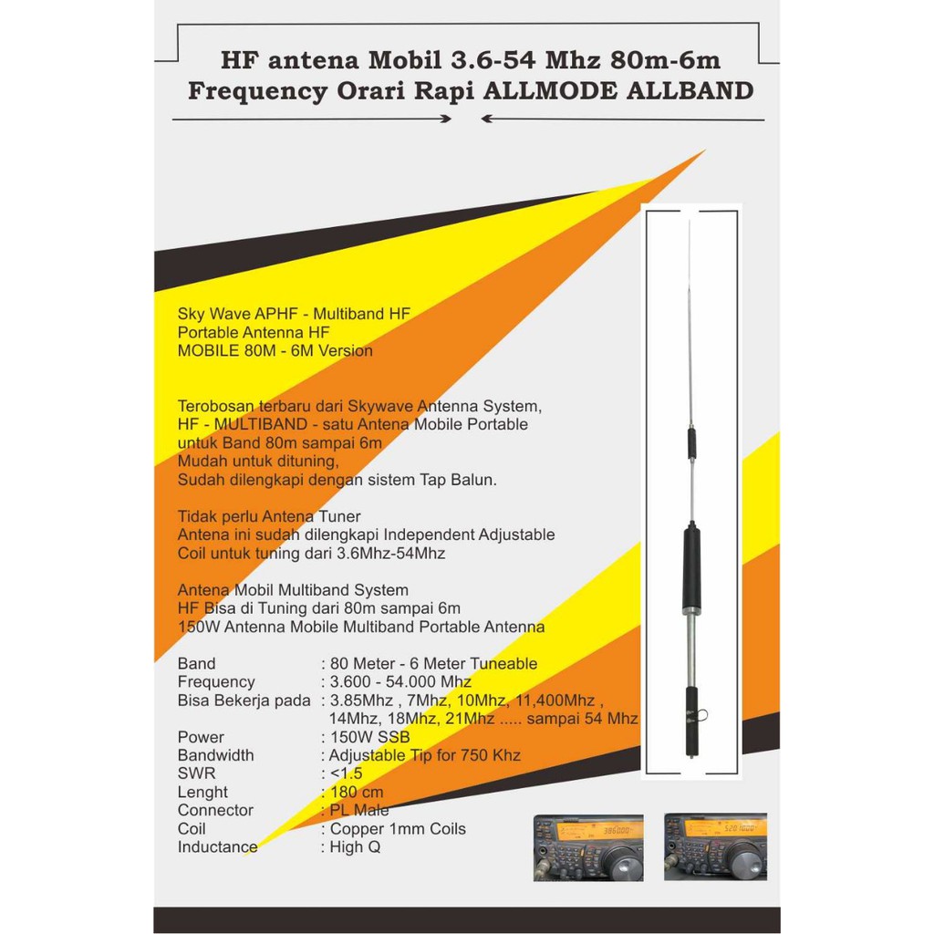 HF Antena Mobil 3.6-54 Mhz 80m-6m Frekuensi Orari Rapi Allmode Allband | Shopee Indonesia